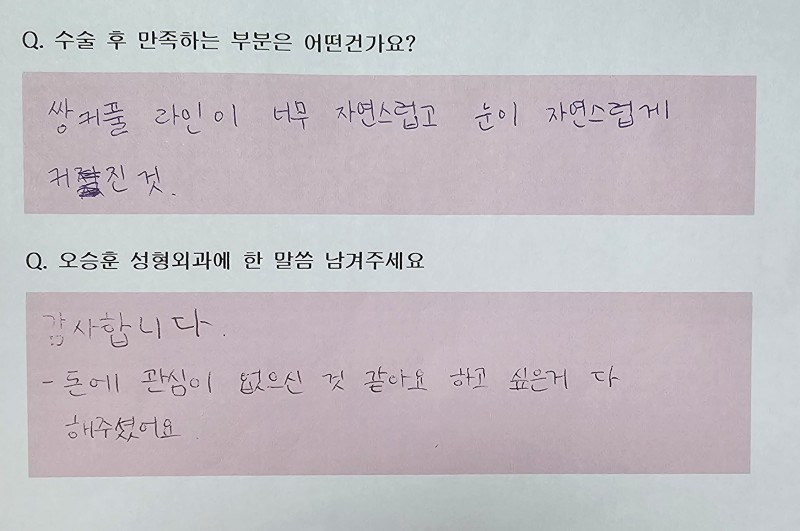 인위적이지 않고 자연스러운 앞트임 결과를 약속드립니다.